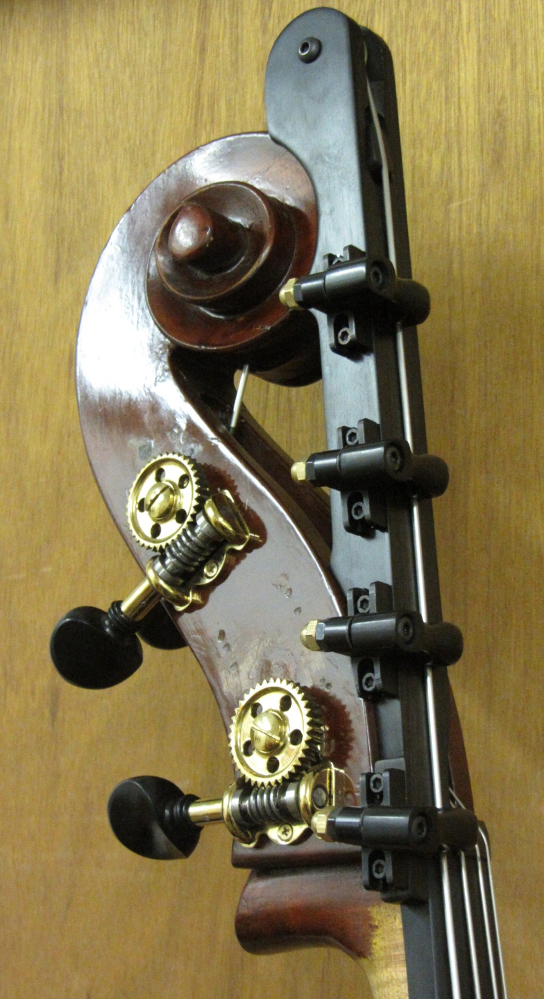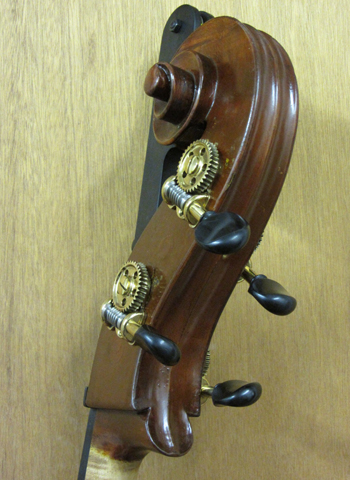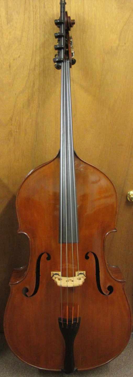 Mario Bandini worked in Ravenna Italy making Basses for just a short time from the 1970s-1980s, and has won medals for his double bass work. All of his basses I have seen are nick-named on the label and this one is named ~SIGFRIDO~. Bandini was also a Civil Engineer, and his past profession is quite evident when looking inside this bass. Many of the internal details are done for structural purposes. The design of his Basses help to produce a fine even tone and maximum power, as one will attest to after playing it. This Bandini was restored in 2012-2013 by Mike Magee in Pittsburgh, with a beautiful handmade Ebony C-Extension. This Bass has been Sold. |