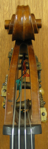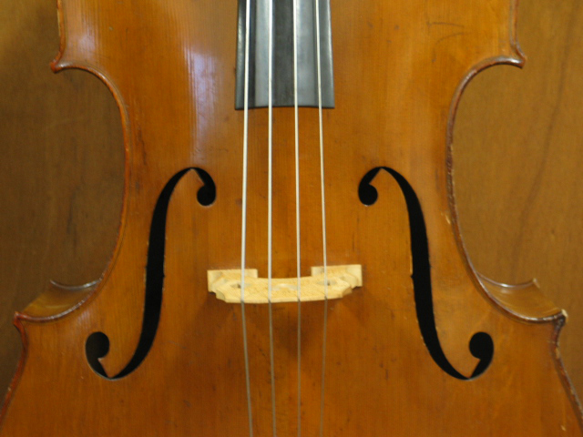 This Bass does show some signs of being a typical Shop-type Bass of its era in the same manner as does all the Colin-Mezin Basses I have seen but never have I seen one in Violin form from that shop. Quenoil is the only maker I have seen with Violin Corners in a Pear shaped Bass so this becomes somewhat of a mystery.