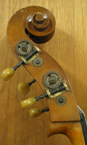 Features: Sloping Shoulder Pear model French Bass with Open Peg Box as used by many French Shops during the early 20th century including Collin-Mezin.