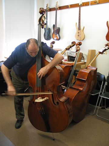 Thumb position with the Corsini is a breeze as Ken plays an F/B double stop on the G and D strings. For Jazz, the growl is killer with a clear deep sounding Bass with a developing complex tone. The Panormo and Corsini model Basses are perfect for Orchestra, Jazz or Solo playing as a 3-in-1 model. We are glad to be able to offer them from our shop. |