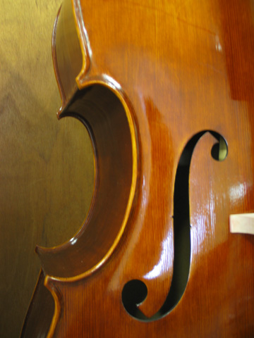 | The Panormo & Corsini model Basses are fully purfled on the Top and Back. The FF holes masterfully cut. | ||