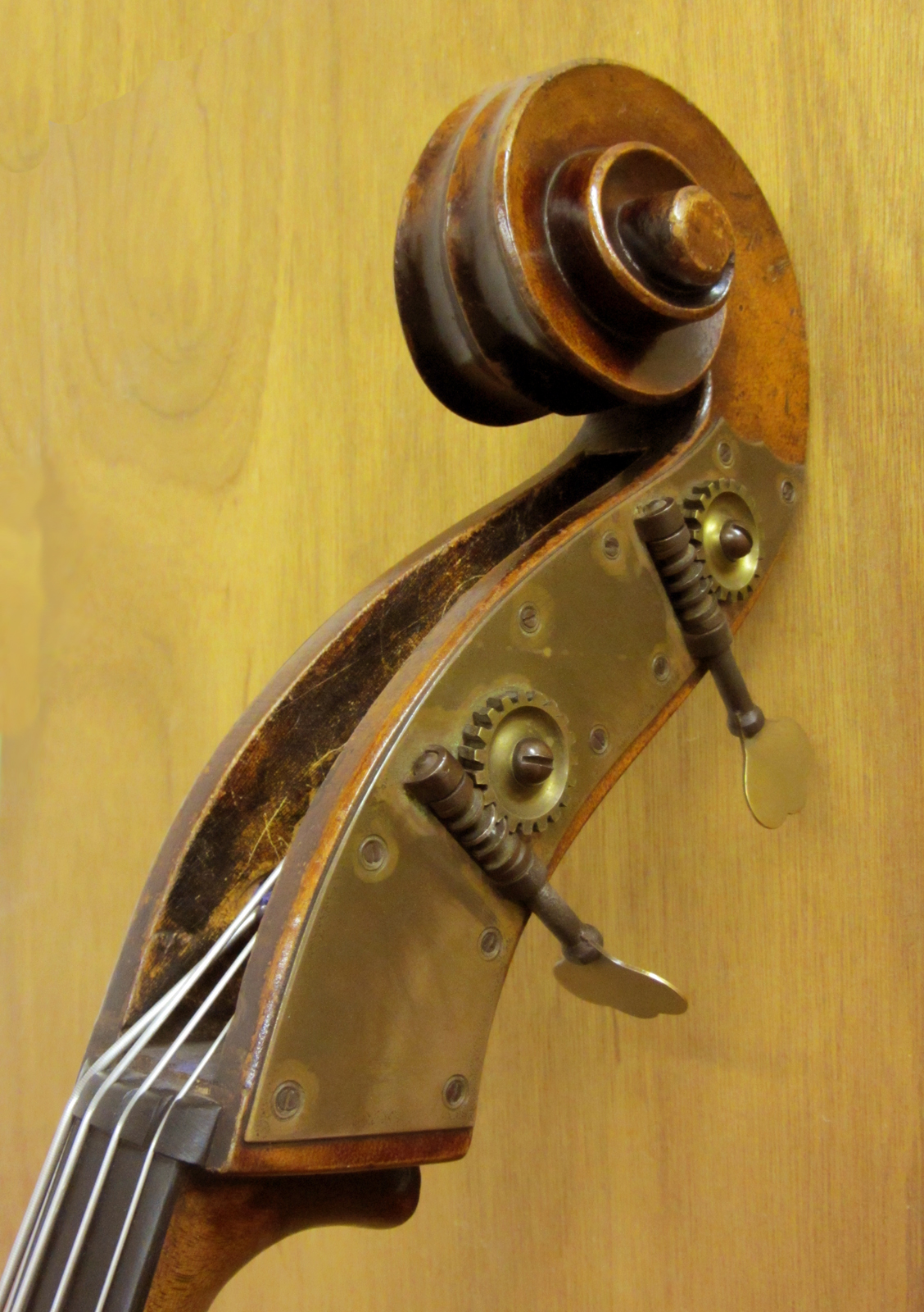 Features: This is an early 20th century import Bass sold by a firm in the mid-west. I have seen two other basses recently with slightly smaller dimensions so that would be the standard 3/4 of its time. This one being longer might have been a small 4/4 model as I think the 5/8ths and 7/8ths sizes were dubbed in by the American market dealers/players in the latter 20th century when sized became more of a fractional business or just for discussion/comparison purposes. Before then it was mainly 1/2, 3/4 and 4/4 numbers being used. Note: For a Bass in the 80 year old range, this one is quite healthy in comparison to other shop type basses that have been in regular use. This Bass has been well maintained over the years as well from what I can see. This Bass has been Sold. |