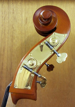 This beautiful Scroll tops off the Panormo Laminate Bass. |